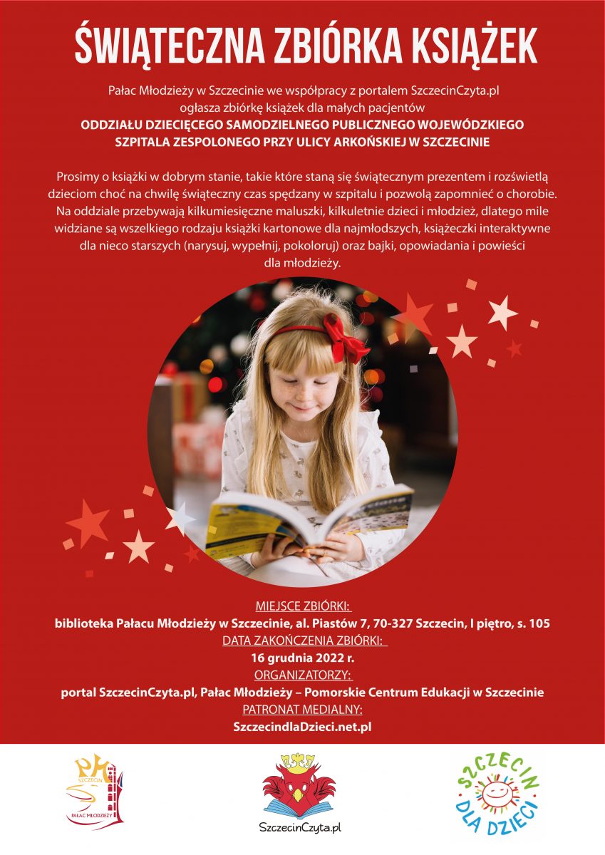 Pałac Młodzieży w Szczecinie we współpracy z portalem SzczecinCzyta.pl, ogłasza zbiórkę książek dla małych pacjentów Oddziału Dziecięcego Samodzielnego Publicznego Wojewódzkiego Szpitala Zespolonego przy ulicy Arkońskiej.