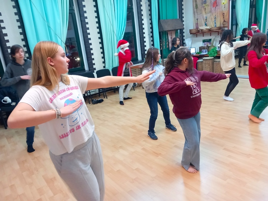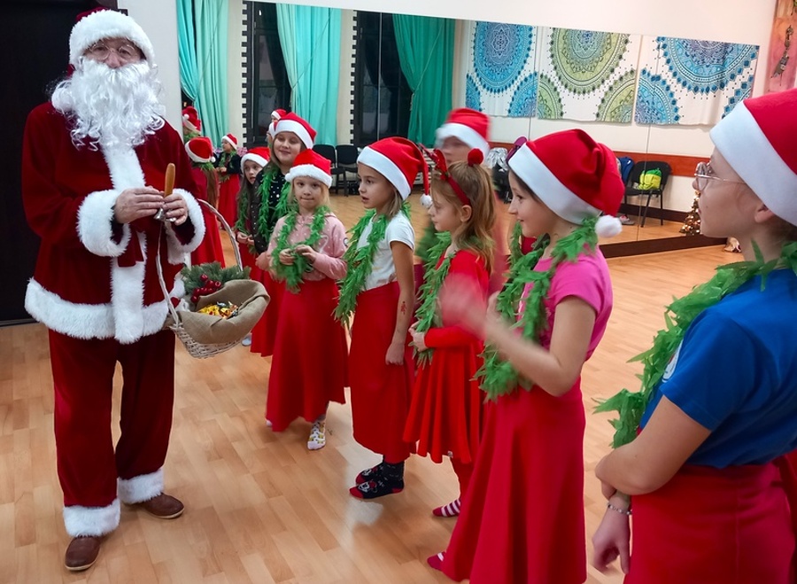 Jak co roku, 6 grudnia Pracownię Tańca Etnicznego pod kierunkiem artystycznym Justyny Kozłowskiej odwiedził Mikołaj. Zostawił prezenty, poczęstował uczestników zajęć słodyczami, a nawet zatańczył! Tym razem drzwi sali 202, w której dziewczęta na co dzień uczą się tańców etnicznych zostały otwarte dla wszystkich. Trwały ,,Pałacowe Mikołajki’’ i każdy mógł zobaczyć jak uczestnicy zajęć poznają tańce hawajskie hula.