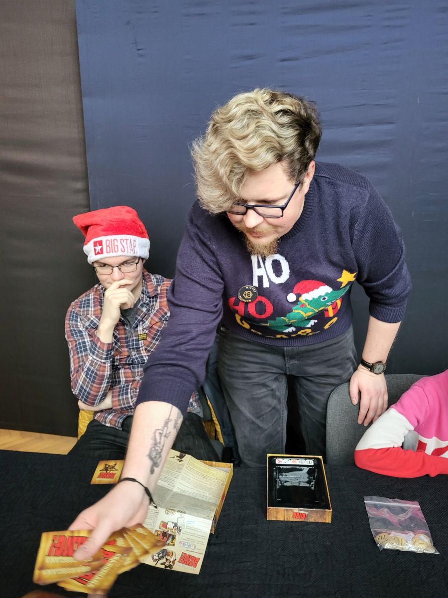 Grudniowe „Kości…” pomimo licznych perturbacji związanych m.in. z pogodą odbyły się z rozmachem. W oczekiwaniu na graczy uczestnicy pałacowych sesji mieli okazję chwilę pograć w tematyczne gry karciane. Nim wszyscy zasiedli to stołów, odbyły się partyjki gry „Bang!” oraz „Zombiaki”. Później, już tradycyjnie, wszyscy zasiedli w przygotowanych wcześniej boksach, by zanurzyć się w opowieściach z bożonarodzeniowymi wątkami.