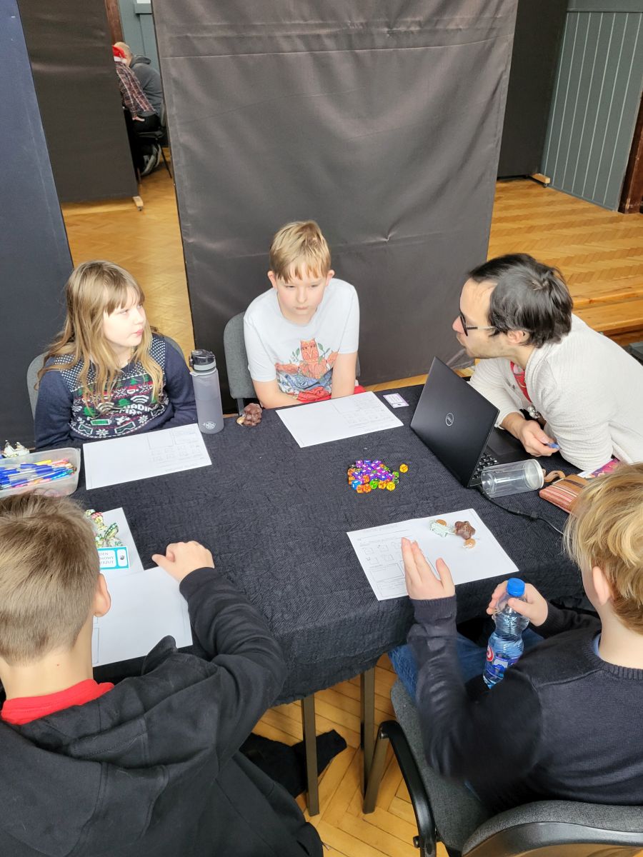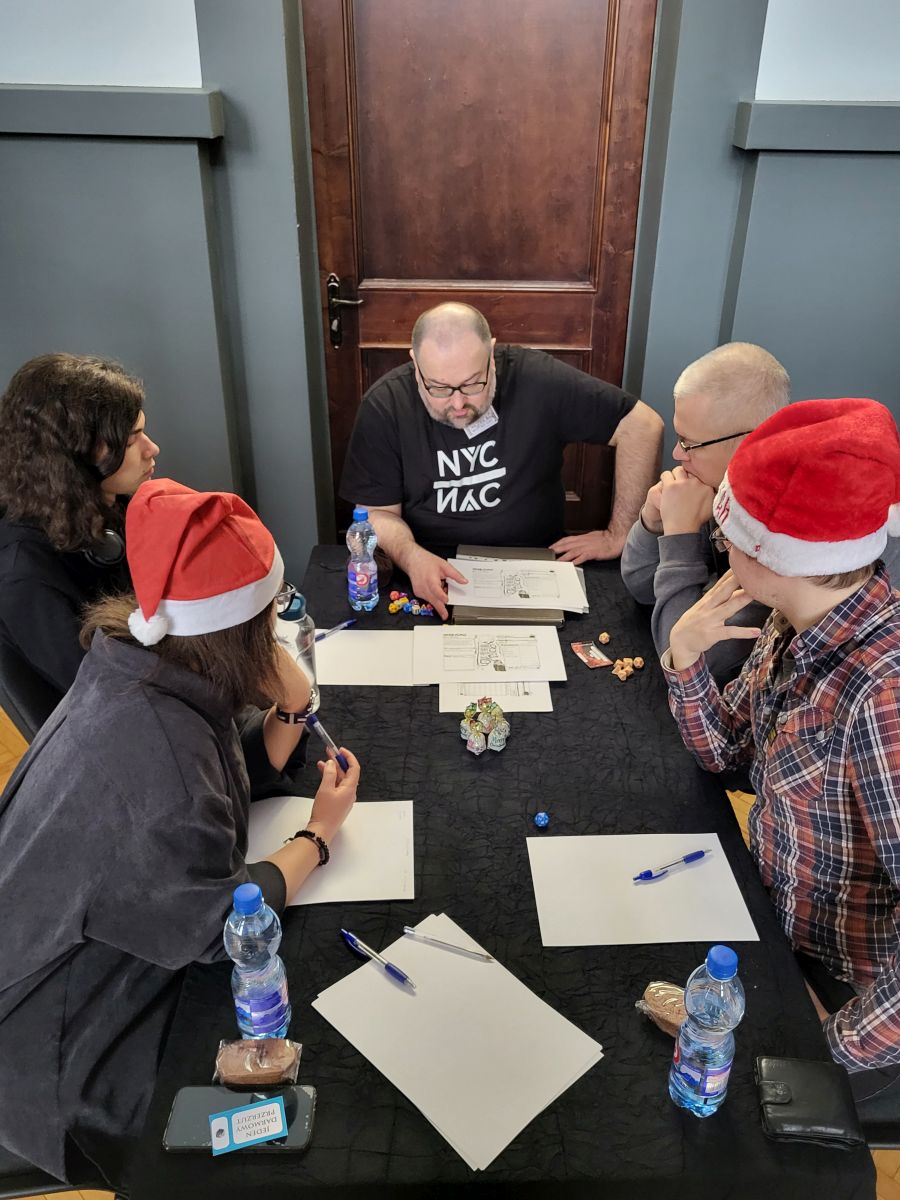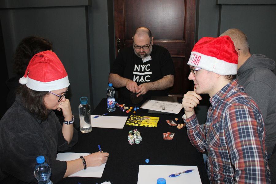 b. „Savage Worlds” – Czterej bracia zostają odwiedzeni przez elfa Mikołaja, Bombkę, Noc Wigilijną. Prosi ich o pomoc w uratowaniu Mikołaja, gdyż ten został pojmany przez Krampusa, demona karzącego za złe zachowanie. Po przeniesieniu się na Biegun Północny razem z elfem Ciapkiem odzyskują sanie, magiczną kulę Mikołaja i w walce na szczycie wieży pokonują Krampusa, ratując jednocześnie Święta.Dziękujemy naszym Mistrzom Gry – Adrianowi Koppowi, Wojtkowi Krzymińskiemu i Maćkowi Szydłowskiemy – za zaczarowane, świąteczne sesje! Dzięki Wam nasza „kościowa” tradycja została podtrzymana i z wytęsknieniem będzie można wyczekiwać kolejnych bożonarodzeniowych sesji w następnym roku.
