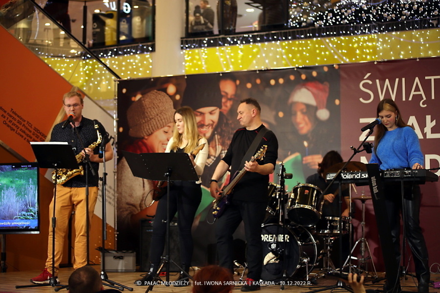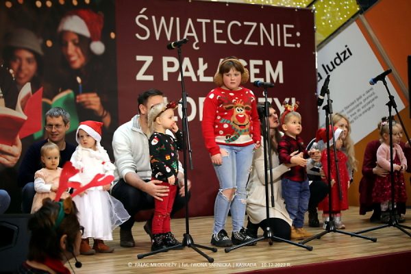 W sobotnie popołudnie, 10 grudnia uczestnicy pałacowych pracowni wystąpili na scenie w Galerii Kaskada. To już kolejny raz kiedy nasi młodzi artyści mają szansę zaprezentować swoje umiejętności wokalne i taneczne przed większą widownią. Świąteczny repertuar, piękne choinkowe ozdoby to wszystko wprowadziło nas w magiczny nastrój zbliżających się świąt. Całość poprowadziła p. Iga Kamela z Pracowni Rozwoju Muzyczno-Ruchowego, przy akompaniamencie p. Marcina Kurylaka.