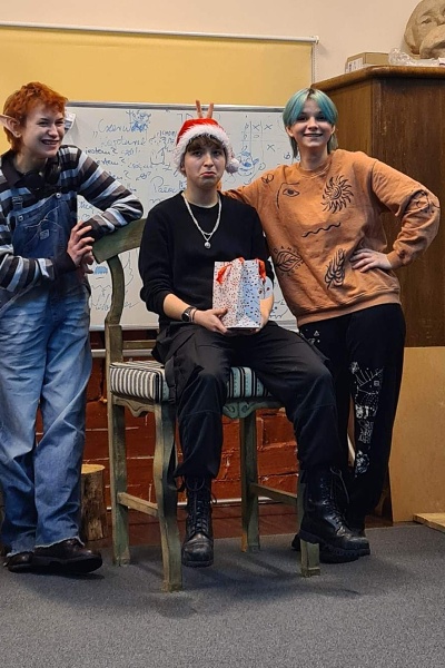 Czy ktokolwiek czuje się zbyt „stary” by obchodzić mikołajki? Cóż to za pytanie? Przecież wszyscy, bez względu na wiek uwielbiają prezenty i niespodzianki, a szczególnie te słodkie…. Tak więc w Pracowni Teatralno-Muzycznej Iwony Faj i Iwony Szary wreszcie nadszedł ten upragniony czas! Choć przeziębienie zdziesiątkowało grupę ALLA BREVE – nie przeszkodziło to zbytnio w przeprowadzeniu konkursu śpiewania kolęd! Ponadto prezenty posłużyły do improwizacji w tematyce świątecznej zarówno w grupie FANABERIA jak i DELL’ARTE!