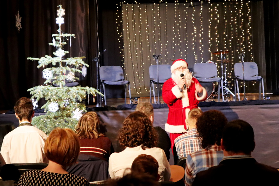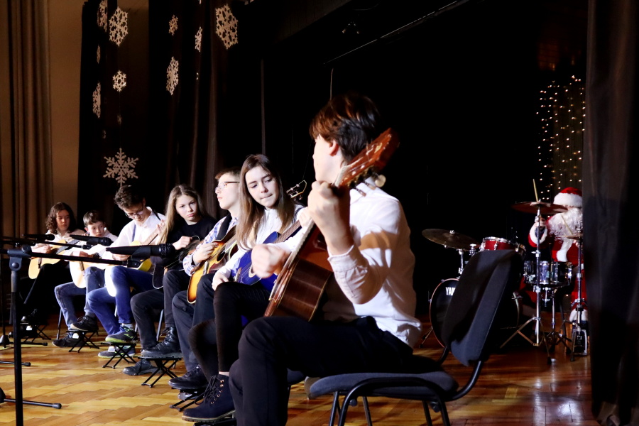 Prowadzący Pracownię Szymon Lipski zaprezentował się zebranej widowni w stroju Mikołaja, a na koniec występu wsparł swoich podopiecznych grając na perkusji i wykonując razem z nimi instrumentalną wersję piosenki harcerskiej „Szara lilijka”, co spotkało się z entuzjastyczną reakcją publiczności!