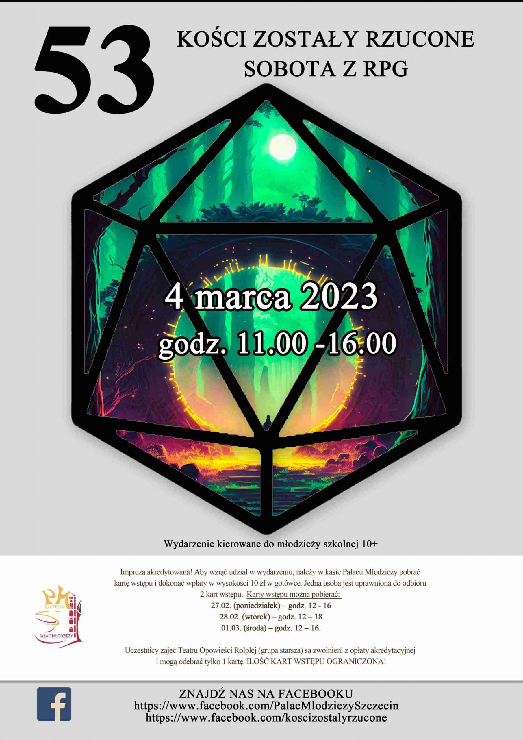 Mamy nadzieję, że luty nie ostudził Waszych apetytów na sesje RPG. W zamian za brak „Kości” w lutym w Pałacu z marcu będą zorganizowane dwie, fantastyczne imprezy!