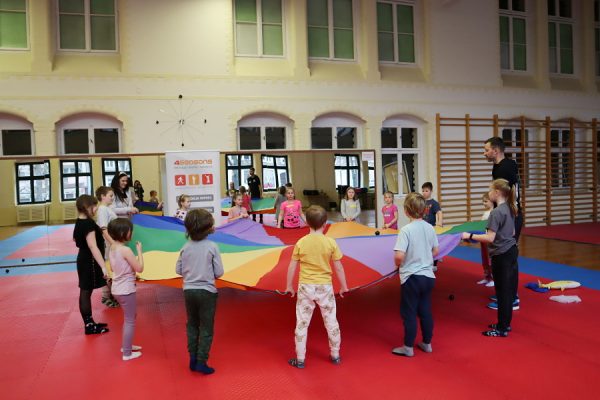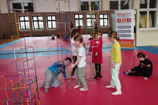 Podczas zajęć, które poprowadzi wykwalifikowany trener, certyfikowany animator i instruktor rekreacji ruchowej zajęć czeka na uczestników mnóstwo zabaw sprawnościowych o różnym stopniu trudności, rozwijających zwinność, koordynację, orientację przestrzenną i współpracę w parach oraz w zespole. Tory przeszkód, balony, piłki, kije gimnastyczne, chusty animacyjne, balony, liny, sznurki – to wszystko uczestnicy wykorzystają w budowaniu dobrych relacji i wspólnym działaniu!