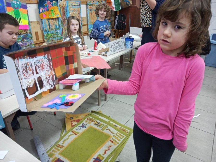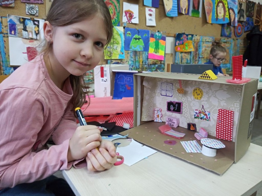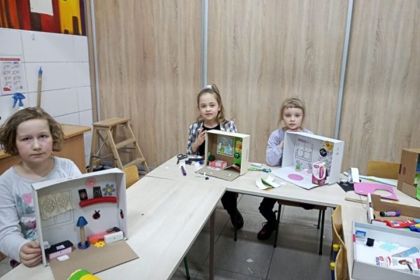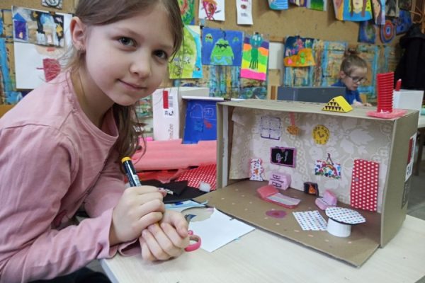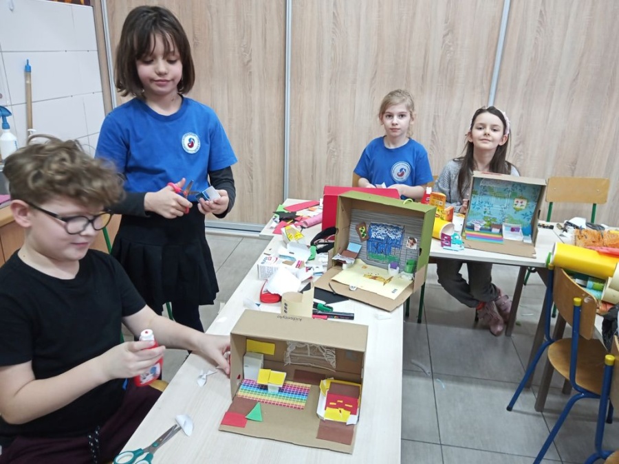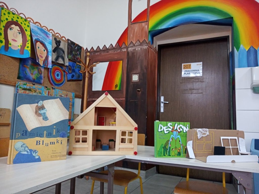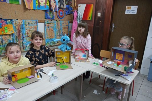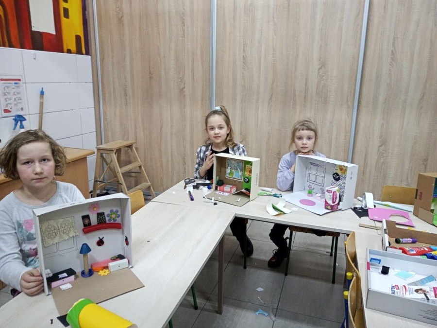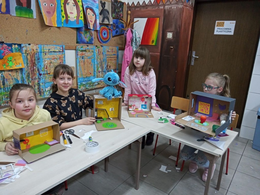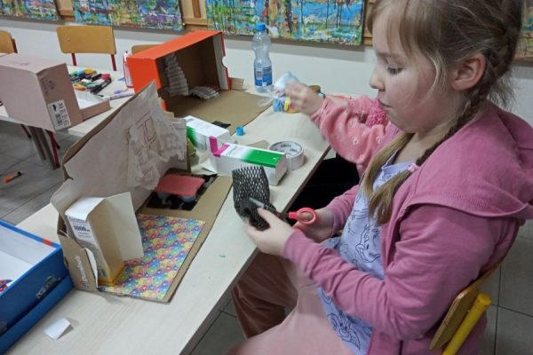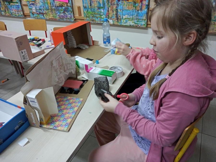 Uczestniczki i uczestnicy zajęć plastycznych poznali wzruszające historie małych podopiecznych Doktora. Obejrzeli ilustracje autorstwa Iwony Chmielewskiej. Zastanowili się jakie potrzeby i marzenia mieli bohaterowie książki. Następnie z różnych materiałów zaprojektowali pokoje, w których dobrze byłoby dzieciom.
