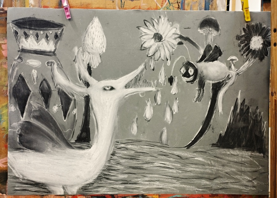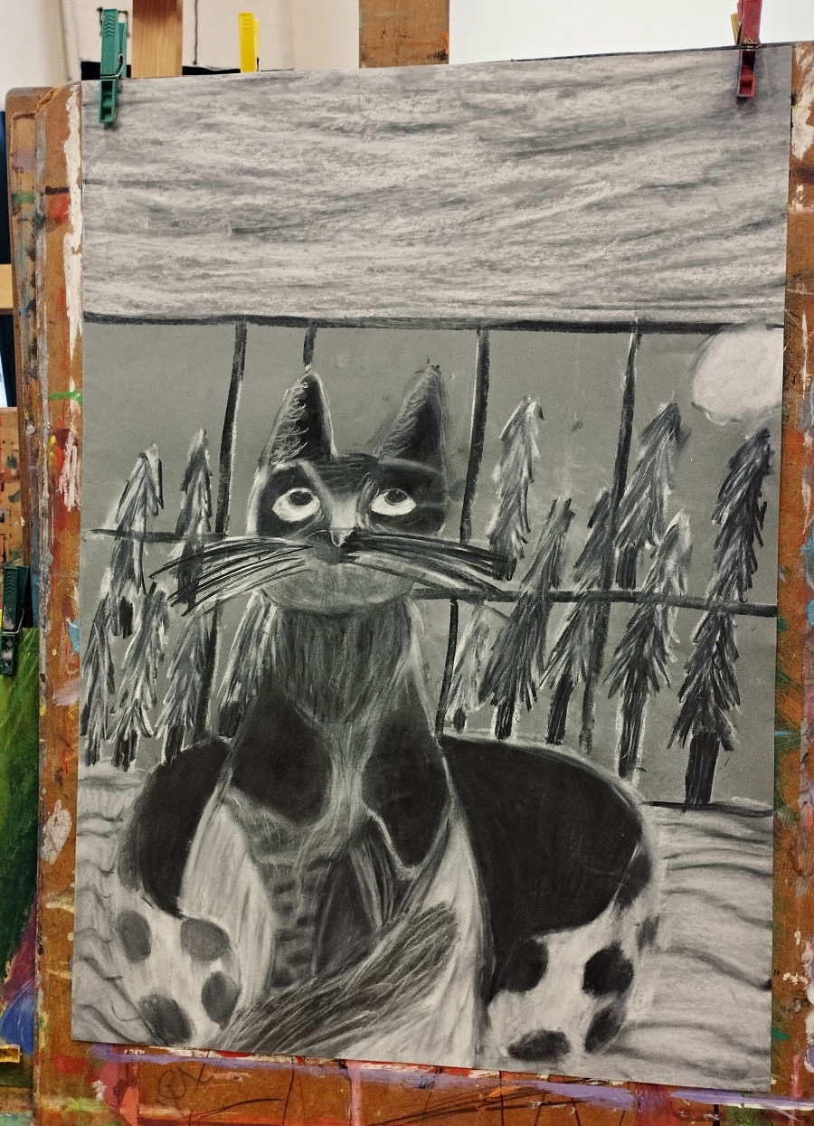 Rysunki węglem Pałac Młodzieży Opublikowano w 29 marca, 2023 o 15:11 przez Dział Organizacyjny- Monika4 kwietnia, 2023 o 15:46 Uczestnicy Pracowni Plastycznej zmierzyli się ostatnio z niełatwym zadaniem. Należało wykonać kompozycję walorową z użyciem węgla rysunkowego oraz białej pasteli. A oto efekty ich pracy… . Opiekun artystyczny: Mariola Grochowska