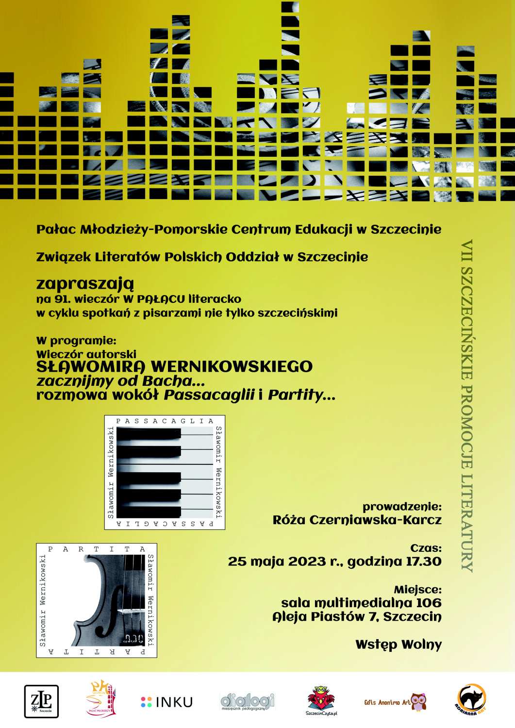 Pałac Młodzieży-Pomorskie Centrum Edukacji w Szczecinie oraz Związek Literatów Polskich Oddział w Szczecinie zapraszają na 91. wieczór z cyklu spotkań z pisarzami nie tylko szczecińskimi W PAŁACU literacko.