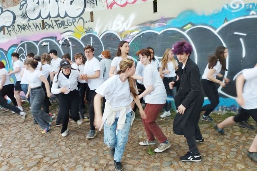 W sobotę, przed najważniejszym występem, grupa intensywnie ćwiczyła około trzech godzin w urokliwej, zielonej części wyspy Kampa, na którą docieraliśmy Mostem Karola, wypełnionym tłumem turystów. Potem przy murze pokrytym graffiti, w pobliżu Wełtawy, miejscu z Widokiem na Most Karola, pełnym turystów i spacerowiczów rozpoczął się flash mob, w którym młodzież za pomocą ciał i rekwizytów przekazała widzom swoją wizję świata. Symboliczne gesty i układy odzwierciedlały ich bunt i niezgodę na to z czym chcą walczyć w przyszłości. Na koniec łańcuch, zbudowany z ich ciał, tworzący mur, pod wpływem własnego ciężaru i pozornego balansu rozleciał się, dając nadzieję na przetrwanie buntu i wywalczenie dobra. Występ został nagrodzony oklaskami i był nagrywany przez przypadkowych przechodniów.