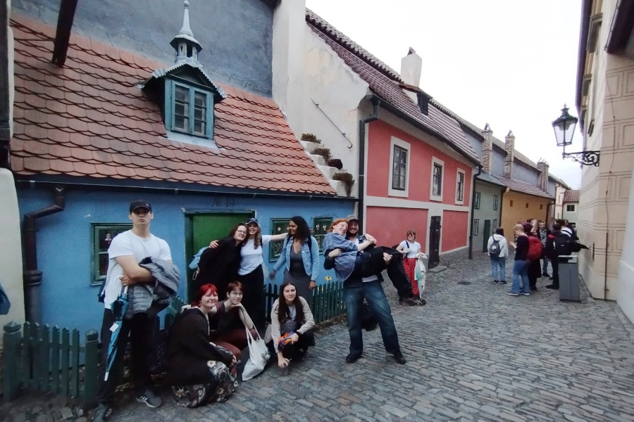 Na Starym Mieście w Praskim Kreatywnym Centrum mieliśmy możliwość ćwiczeń i czas na inspirujące rozmowy, gdy za oknem turyści tłoczyli się pod słynnym Zegarem Astronomicznym Orloj. Naszej grupie udało się zobaczyć m.in. Praski Zamek, Złotą Uliczkę, Metronom i Mur Lennona, ścianę na której od ponad 40 lat graffiti zmienia się z dnia na dzień, i do której przybywają turyści z całego świata! My obejrzeliśmy również film dotyczący historii tego miejsca.