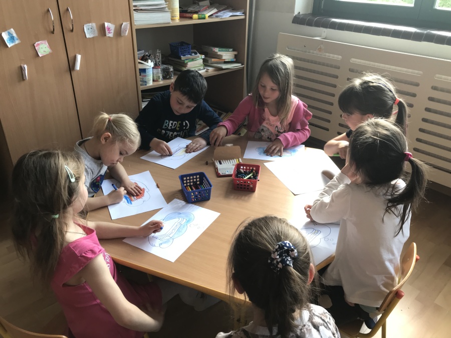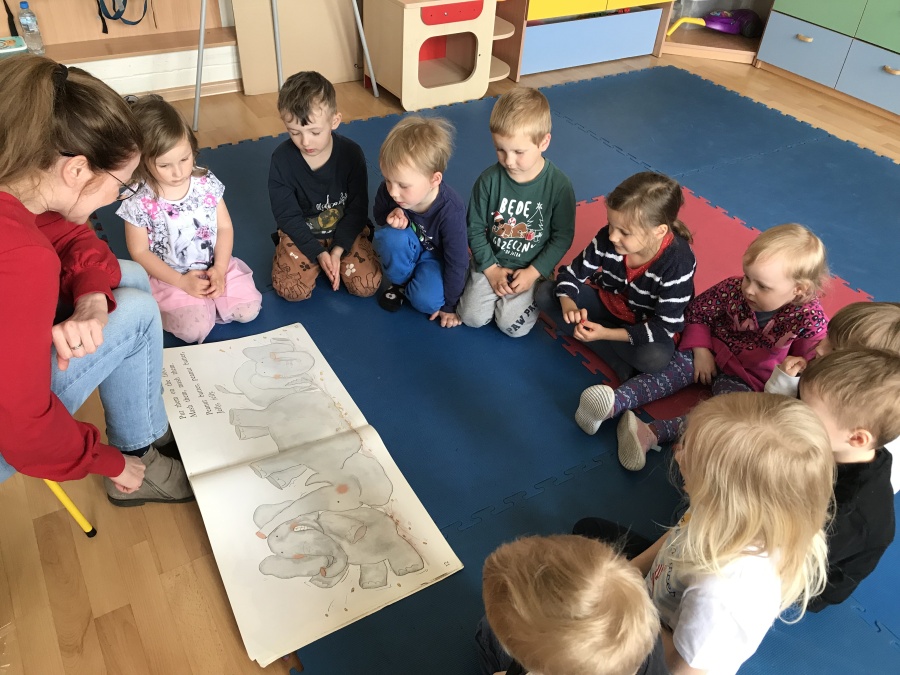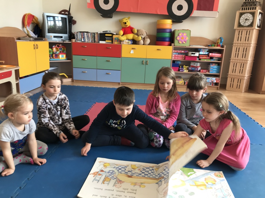 W ramach cyklicznej imprezy edukacyjnej pt. English Stories na zajęciach w Pracowni Z Językiem Angielskim przez Świat, dzieci wysłuchały angielskiej opowieści pt. „Peanut Butter and Jelly”.