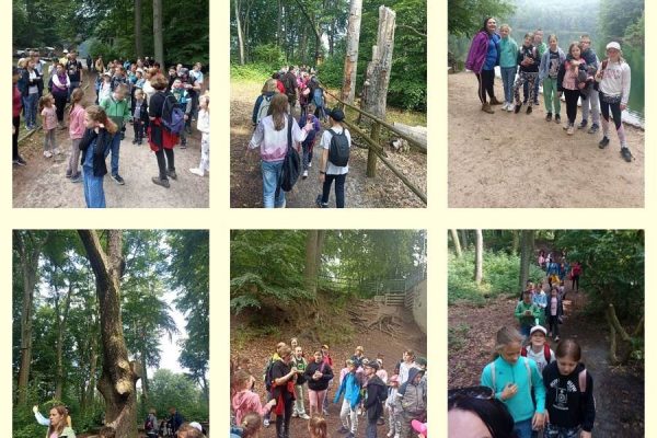 W sobotę 17 czerwca turystycznie i sportowo pożegnaliśmy rok szkolny 2022/2023 z Leśnymi Sobotami. Grupa ok. 100 osób spotkała się na ulicy Kopalnianej pod wiaduktem przy jeziorze Szmaragdowym i wyruszyła na wędrówkę ścieżką dydaktyczną wokół jeziora.