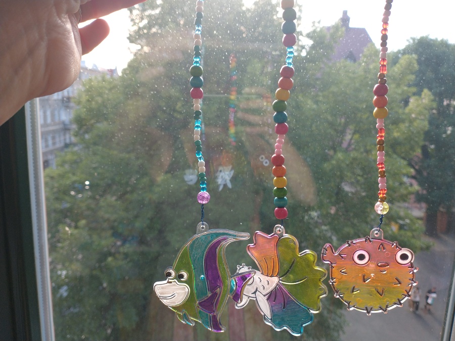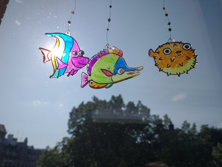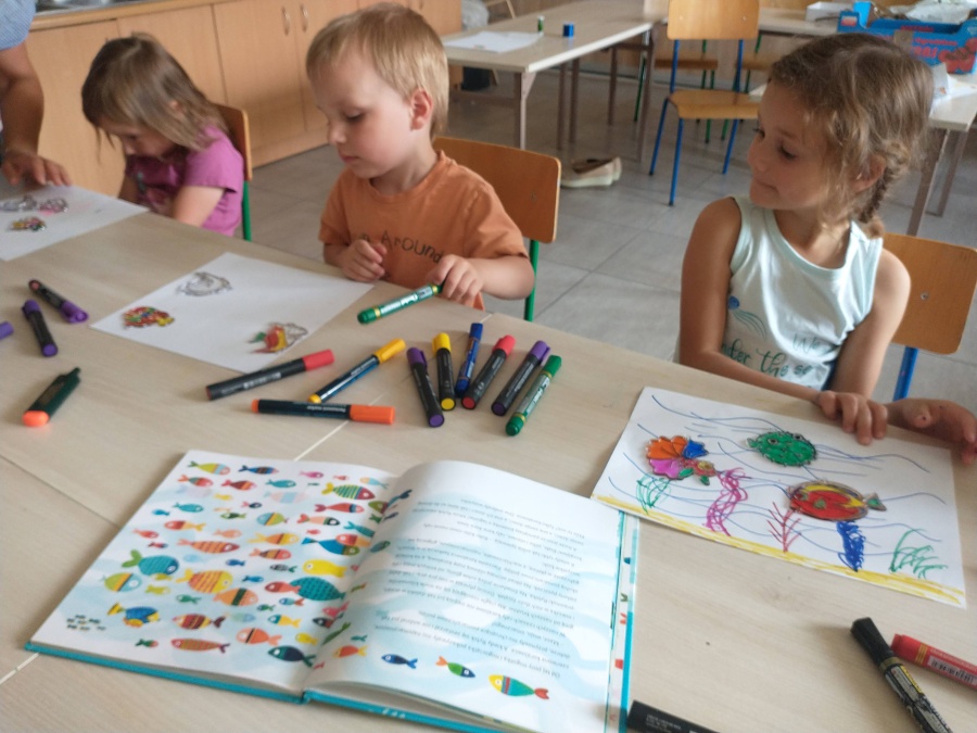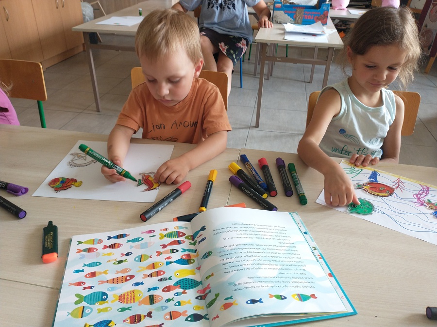 „Bajki z dżungli i oceanu” Agnieszki Ginko, a wsród nich „Rybka Rybik i życzliwość” zaprowadziły uczestników Pracowni Plastycznej p. Magdaleny Kucharskiej w podwodny świat kolorowej rafy koralowej. Dzieci obejrzały prezentację oraz wysłuchały proekologicznej opowieści o tym, dlaczego tak ważne jest dbanie o czystość wód i oceanów. Stworzyły też kolorowe witraże – rybki, które przepuszczając światło słoneczne będą cieszyć swymi kolorami i przypominać o tym, żeby zawsze zabrać ze sobą swoje śmieci, czy to z plaży, czy z lasu, czy gdziekolwiek indziej.