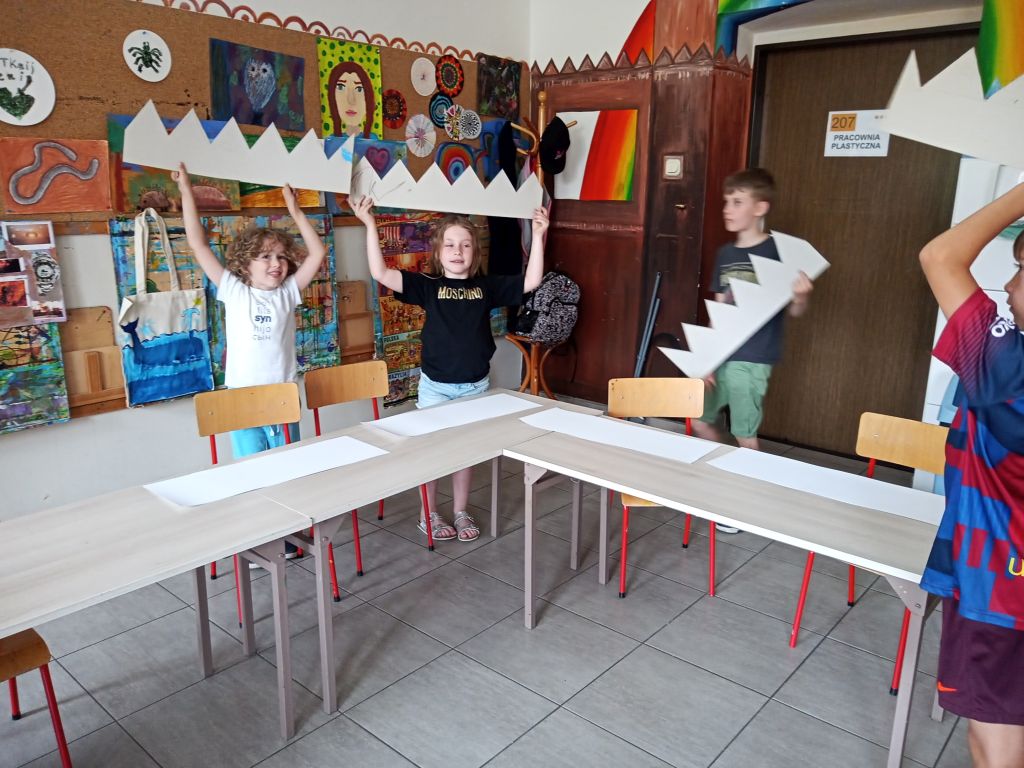 Po zapoznaniu się z wydawnictwem dzieci zaprojektowały swoją koronę. W czasie pracy zastawiały się nad poważnymi, królewskimi problemami. Oto niektóre z ich wypowiedzi: .