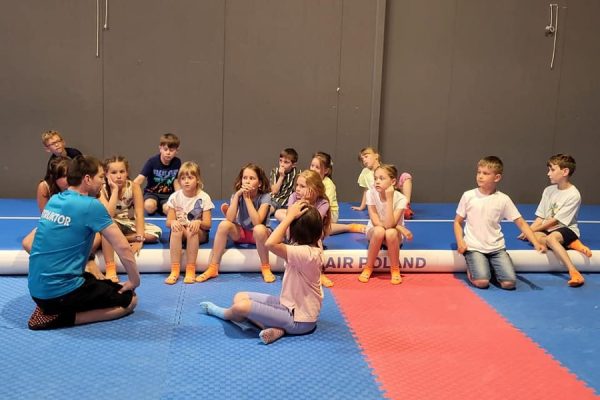 Trampolinowe ścieżki akrobatyczne i gimnastyczne, batuty sportowe, basen wypełniony gąbkami, dzięki którym najbardziej skomplikowane akrobacje stają się bezpieczne.