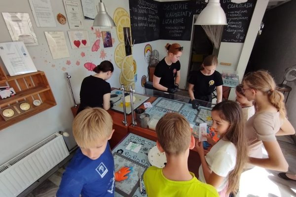 W trakcie spotkania dzieci dowiedzą się z czego powstają lizaki, a następnie zaprojektują wzory według własnego pomysłu.