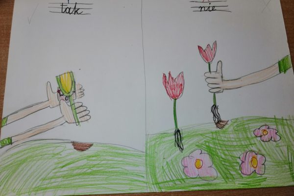 Tym razem spotkanie z Kamishibai w Pracowni Rozwoju Muzyczno-Ruchowego, było wyjątkowe, ponieważ obchodziliśmy Dzień Dziecka. Opowiadanie „Trzeba będzie” to historia dziecka, które marzy o lepszym życiu na Ziemi i rozmyśla, co trzeba będzie zrobić, by nie było głodu, biedy, wojen. Ta bardzo wzruszająca opowieść, zainspirowała dzieci do własnych przemyśleń. Miały bardzo mądre i praktyczne rady, by żyło się nam wszystkim lepiej.
