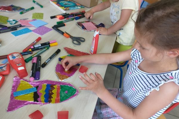Życie wodnych stworzeń – zółwika, ośmiornicy, kraba, rekina – było tematem zajęć z książką „Żółwik z oceanu” Zofii Staneckiej w Pracowni Plastycznej p. Magdaleny Kucharskiej.