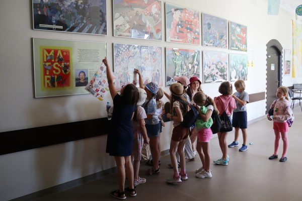Uczestnicy pałacowych półkolonii chętnie zatrzymują się przed wystawą i przyglądają ilustracjom. Wielu z nich pyta o książkę i planuje dowiedzieć się czegoś więcej o niezwykłych świętach.