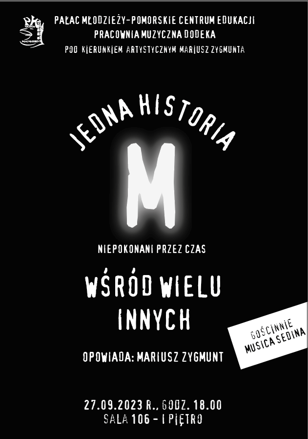 W środę, 27 września o godzinie 18.00 zapraszamy na niezwykłe spotkanie, w trakcie którego uczestnicy usłyszą historię z terenów Pomorza, z czasów powojennych, ozdobioną krótkim występem zespołu Musica Sedina. Historia ta jeszcze niedawno, była częścią teraźniejszości, a dziś należy do przeszłości, którą powoli przykrywa kurz czasu.