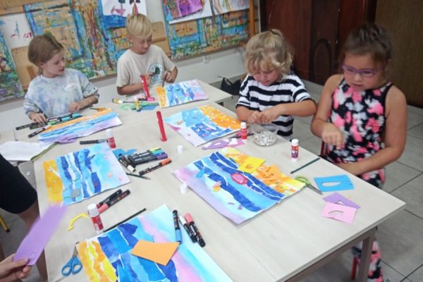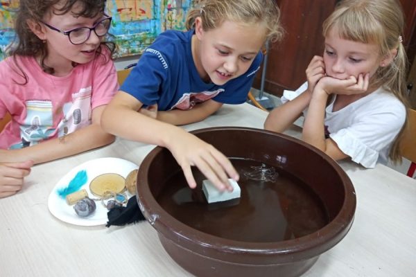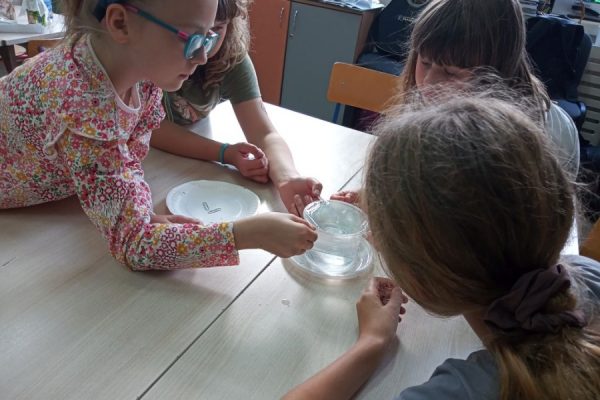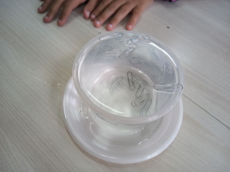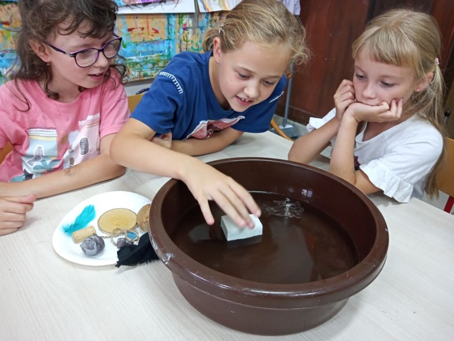 Grupy z Pracowni Plastycznej Agnieszki Czachorowskiej zainspirowała woda. Bawiąc się nią, dzieci sprawdziły czy spinacze biurowe potrafią unosić się na wodzie. Poeksperymentowały także z innymi materiałami i doświadczyły co tonie w wodzie, a co pływa na powierzchni…