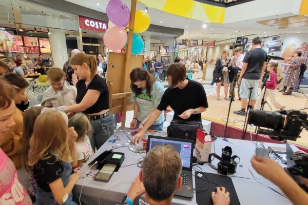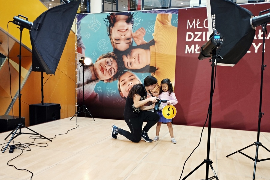 W ubiegłą sobotę na scenie w Galerii Kaskada uczestnicy pałacowych pracowni mieli okazję zaprezentować się na scenie. Podczas wydarzenia dużą atrakcją był punkt foto przygotowany przez Pracownię Fotografii Cyfrowej i Grafiki Komputerowej. Można było tam było zrobić sobie zdjęcie lub portret z przyjaciółmi, który stał się potem elementem breloczka