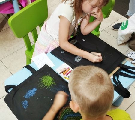 Taka niepowtarzalna torba z pewnością przyda się w szkole, na zakupach lub do noszenia ulubionych rzeczy. Warsztaty przygotowały i poprowadziły nauczycielki z pałacowych pracowni plastycznych.
