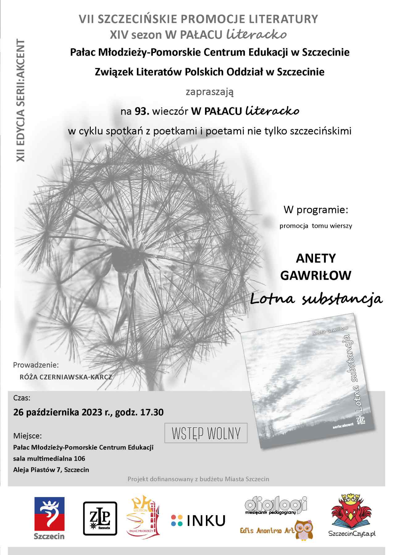 Szczeciński Oddział Związku Literatów Polskich kontynuuje VII edycję projektu SZCZECIŃSKIE PROMOCJE LITERATURY 2023, który jest dofinansowany z budżetu Miasta Szczecin.
