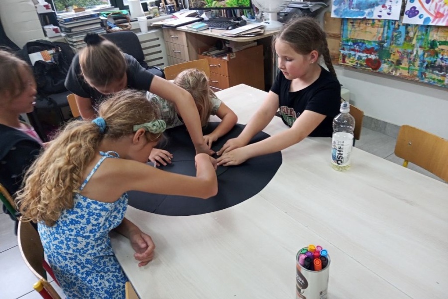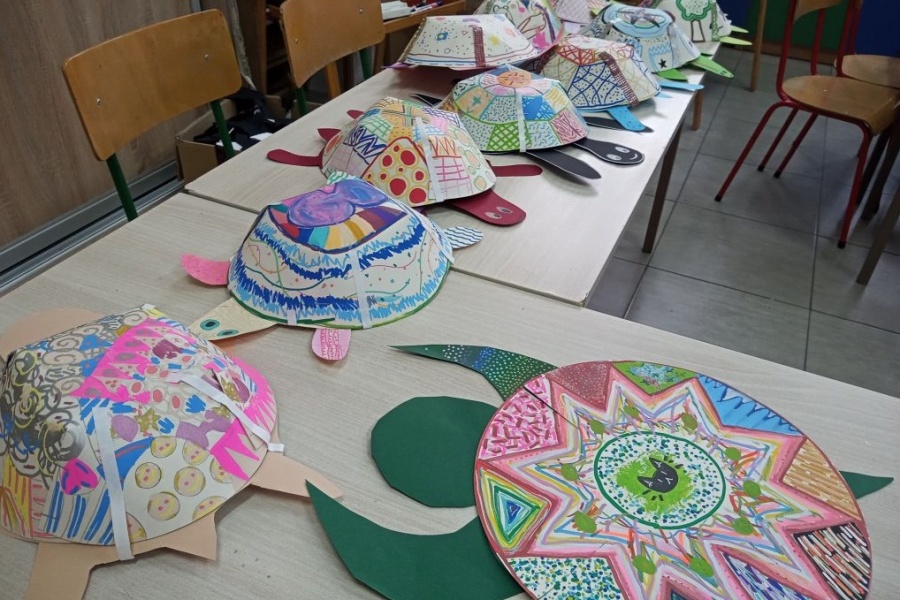 Ustaliłyśmy, że nasza piniata przybierze kształt tego zwierzęcia. Dziewczynki indywidualnie przygotowały swoje „prototypy”. Następnie dokonałyśmy oceny koleżeńskiej prac. W ten sposób wyłoniły się zespoły, które odpowiadały za poszczególne elementy piniaty. Dziewczynki pracowały w dwóch zespołach, które zrealizowały całość projektu. Po naszym eksperymencie wiemy, że w sztuce możliwa jest demokracja. „Demokratyczny żółw”, oprócz rozwijania umiejętności plastycznych, stworzył sytuacje do współpracy, ustalania wspólnych celów i współdecydowania artystycznego.