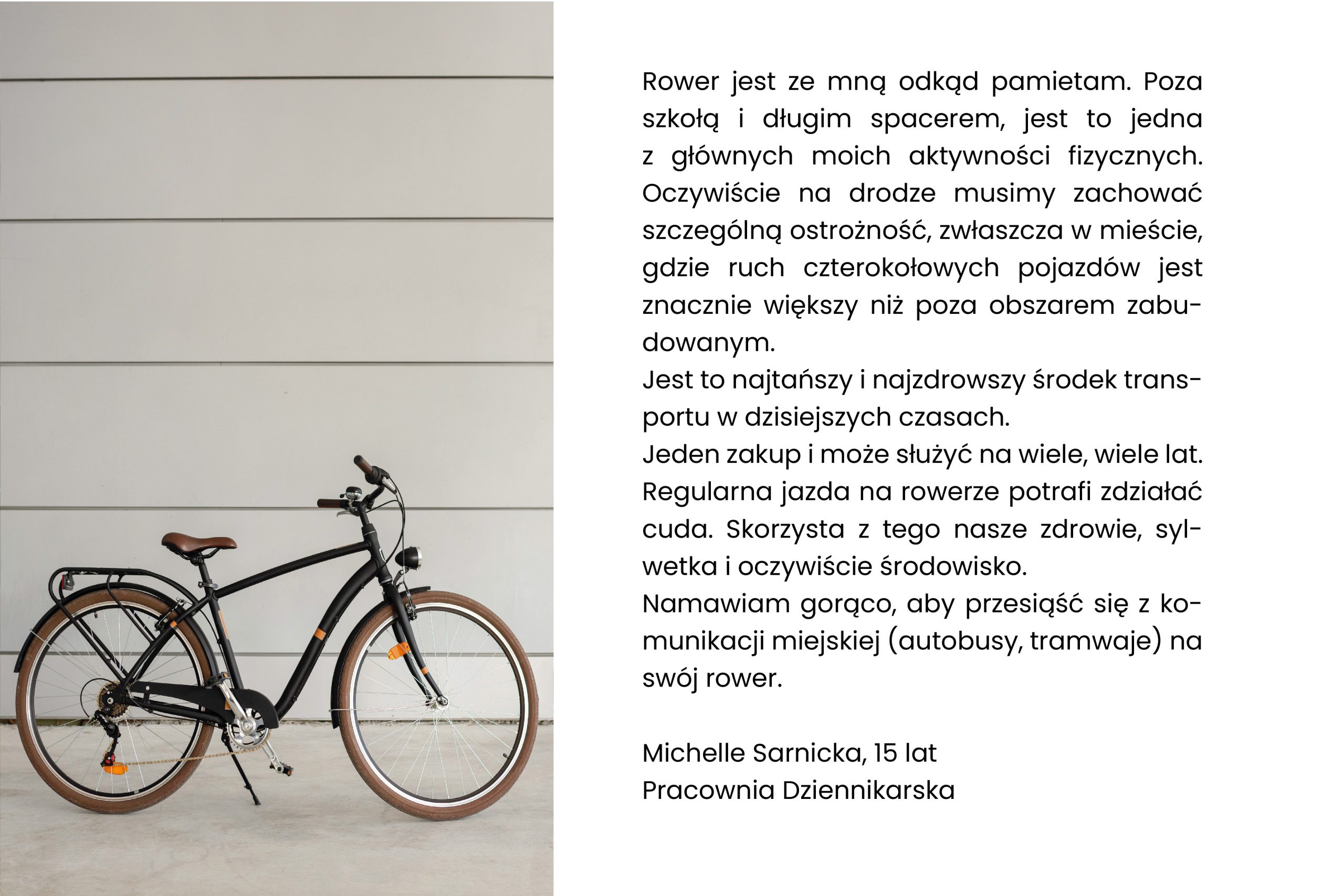 Rower jest ze mną odkąd pamietam. Poza szkołą i długim spacerem, jest to jedna z głównych moich aktywności fizycznych. Oczywiście na drodze musimy zachować szczególną ostrożność, zwłaszcza w mieście, gdzie ruch czterokołowych pojazdów jest znacznie większy niż poza obszarem zabudowanym.