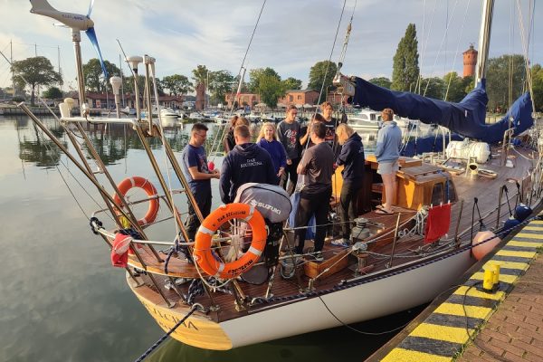 A podczas pobytu w portach trwała integracja – wspólne szantowanie przy dźwiękach gitar, gra w karty w mesie. Była też okazja do zwiedzenia miasta i Oceanarium w Stralsundzie, spacer na klify w Parku Narodowym Jasmund i po promenadzie w Świnoujściu a także wyjście na pizzę, czy lody w Trzebieży. Oprócz integracji załóg, były momenty na szkolenie z węzłów, jak również kultywowanie tradycji morskich poprzez codzienne podnoszenie o godz. 08.00 bandery na jachcie Dar Szczecina, czy oddawanie honorów i pozdrawianie stojącego przy kei w Świnoujściu zaprzyjaźnionego żaglowca STS Kapitan Borchardt.