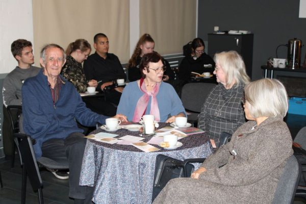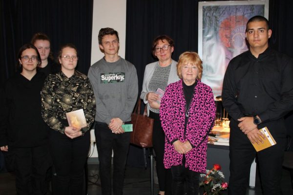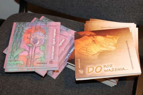 Rozmowa liryczna z moderatorką spotkania, Różą Czerniawską-Karcz, płynęła wartko, aczkolwiek mocno ekspresyjnie… wybrzmiewały emocje przy tematach tkliwych i dotkliwych (wojna, pandemia, bezdomność, ból), nabierały sensów refleksje o byciu, przemijaniu czy doświadczaniu samotności w naszym kosmicznym chaosie, błyszczały słowne impresje w odwołaniach do impresjonistów ulubionych i do największej artystki – Natury, równie bliskiej Barbarze Moraczewskiej-Jankowskiej… I… śmiech, kiedy to w dialogu z publicznością do głosu dochodziły chimeryki, ulubiony gatunek poetki, a nawet HAI-Q przez Q. Licealiści, zarówno chłopcy jak i dziewczęta chętnie włączyli się do zabawy, sięgając po karty pocztówek, rozsypanych na stolikach i krzesłach.