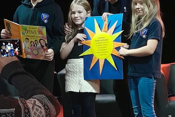 20 listopada przypada Międzynarodowy Dzień Praw Dziecka. Tego popołudnia w Domu Kultury „Słowianin” odbyła się zachodniopomorska premiera książki pt. „Opowieści o prawach dziecka”. Jej autorem jest Marek Michalak – pedagog, rzecznik praw dziecka w latach 2008-2018, pisarz. Dzieci z Grupy 1 i 2 Pracowni Plastycznej Agnieszki Czachorowskiej wraz z Rodzicami wzięły udział w tym spotkaniu dzięki zaproszeniu Jacka Janiaka – dyrektora DK „Słowianin”, szczecińskiego Kawalera Orderu Uśmiechu. Dzieci zauważyły, że na spotkaniu panowała bardzo życzliwa, rodzinna atmosfera. W nowo odremontowanym pomieszczeniu mogły zasiąść przy stolikach z domowym ciastem i napojami. Stały na nich odświętne lampiony, które dodawały odwagi i ciepła.