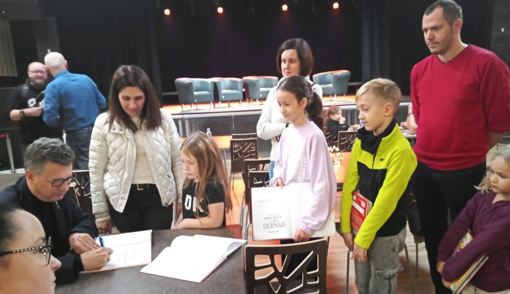 Pałacowa grupa wręczyła Markowi Michalakowi laurkę zapewniającą o znajomości prawa do czasu wolnego. Otrzymaliśmy również autograf w książce „Opowieści o prawach dziecka”, którą będziemy wykorzystywać na naszych zajęciach plastycznych. Autor zachęcił naszych Uczestników i Uczestniczki do ilustrowania swoich opowiadań. Na pewno zmierzymy się z tym tematem!