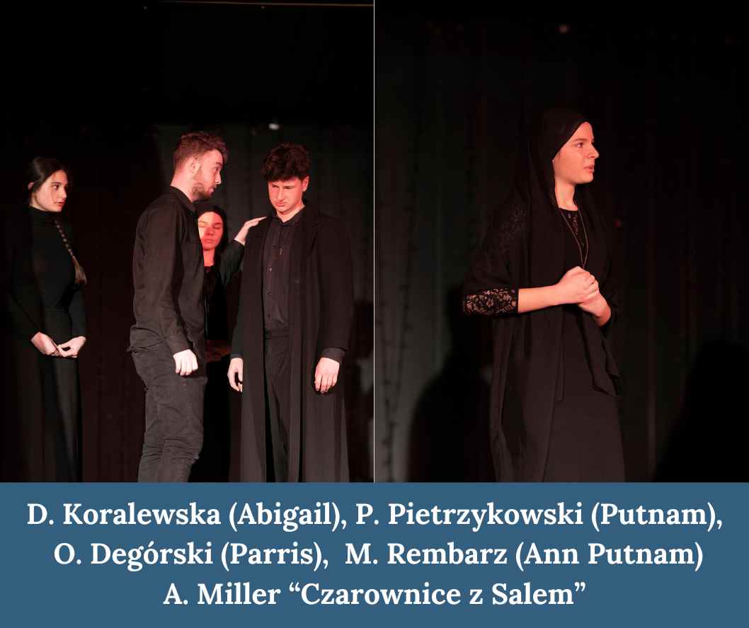 Na scenie zaprezentowali się zarówno uczestniczki i uczestnicy zajęć teatralnych, jak i członkinie i członkowie towarzyszenia. W ramach przedstawienia „Córy Hekate” publiczność zgromadzona w auli mogła w kawiarnianej atmosferze zobaczyć, m.in. fragmenty „Makbeta” Szekspira, „Ogniem i mieczem” Sienkiewicza czy pierwszy akt „Czarownic z Salem” Arthura Millera.