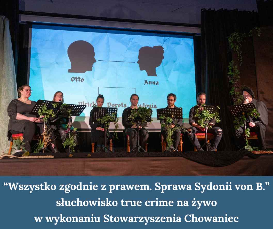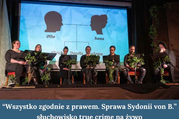 Zwieńczeniem wieczoru było słuchowisko true crime na żywo pt. „Wszystko zgodnie z prawem. Sprawa Sydonii von B.”.