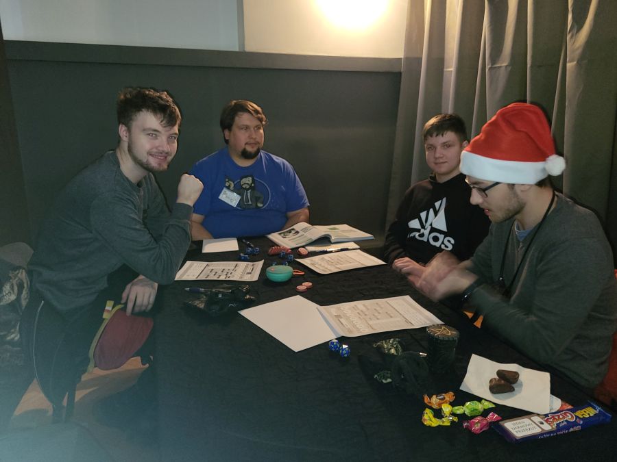 Grudzień to dla „Kości” czas szczególny, ponieważ od wielu lat szykujemy na ten miesiąc sesje inspirowane motywami świątecznymi. W zamian graczki i gracze ubierają się w świąteczne stroje, nakładają na siebie mikołajkowe akcenty, a tradycyjny bufet przeistacza się w suto zastawiony cukierkowy stół. Wszystko po to, by wspierać wspólną opowieść i nie wychodzić z proponowanych przez Mistrzów światów.