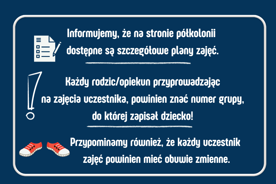 Półkolonie zimowe „Sztuka Was szuka” – ważne informacje Pałac Młodzieży Opublikowano w 11 stycznia, 2024 o 11:06 przez Dział Organizacyjny- Monika14 marca, 2025 o 11:59 W poniedziałek, 15 stycznia w Pałacu Młodzieży rozpoczyna się I turnus pałacowych półkolonii. Poniżej kilka ważnych informacji.