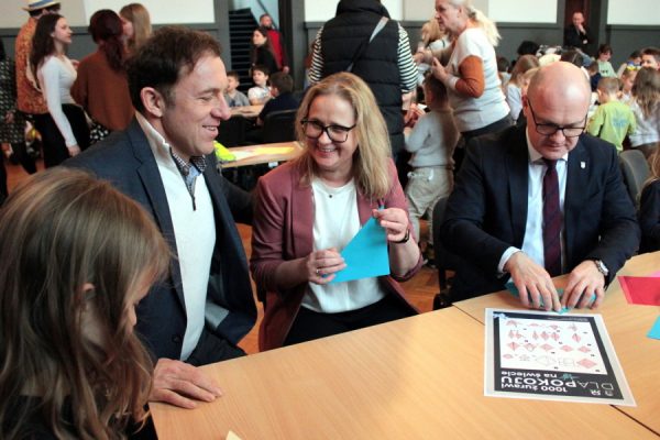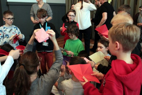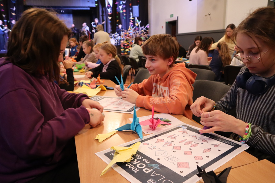 Dzięki dużemu zaangażowaniu wszystkich zgromadzonych w auli Pałacu Młodzieży tuż po godz. 17.00 mieliśmy wykonanych 1315 żurawi w technice origami. Brawo! Wszyscy, którzy byli tego dnia z nami, wiedzą, że to nie łatwa sztuka. Bardzo dziękujemy dzieciom z Ukrainy przebywającym w Ośrodku Centrum Konferencyjno-Wypoczynkowego SZAFIR w Moryniu, uczniom Katolickiej Szkoły Podstawowej w Podjuchach, Szkoły Podstawowej TAK w Szczecinie, Szkoły Podstawowej nr 1 i Szkoły Podstawowej nr 5, a także Szczecin International School, uczestnikom pałacowych pracowni i pracownikom Pałacu Młodzieży, którzy również dołączyli do akcji.