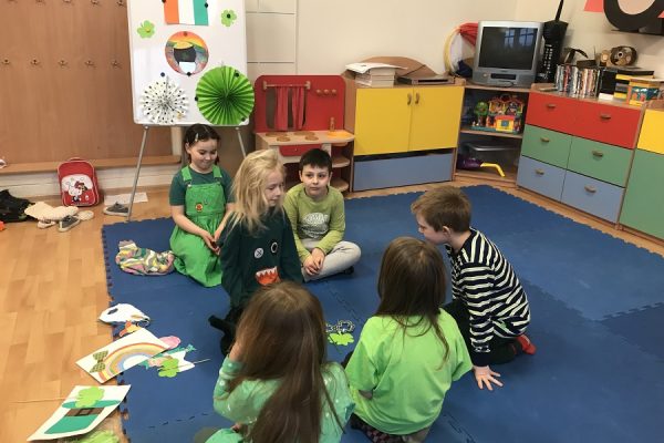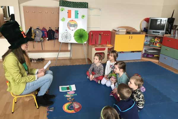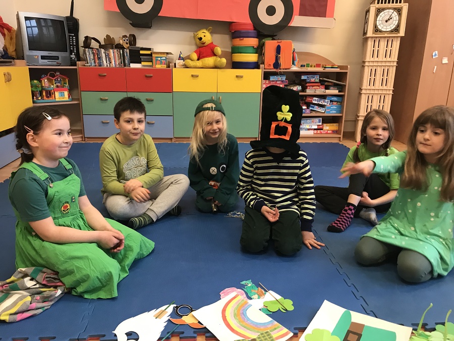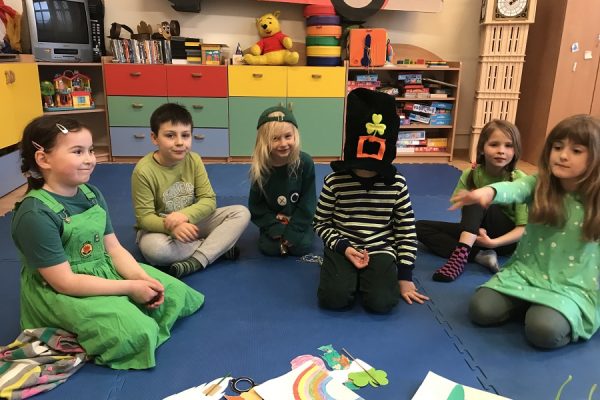 Jak co roku, dzieci w Pracowni Z Angielskim przez Świat obchodziły Dzień Świętego Patryka. Przy tej okazji powtórzyły po angielsku kolory tęczy, wysłuchały bajki o małym skrzacie Leprechaun oraz bawiły się w szukanie złotych monet. Tańczyły również irlandzki taniec!