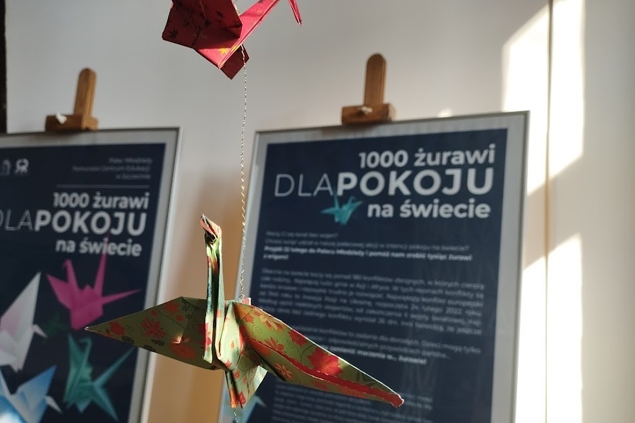 135 przepięknych, kolorowych żurawi przyleciało do nas prosto z… Wielkiej Brytanii! To niesamowite jak nasza akcja Tysiąc żurawi dla pokoju na świecie rozeszła się w świat! Żurawie przysiadły już m.in. na naszym pałacowym drzewie znajdującym się na parterze Pałacu Młodzieży.