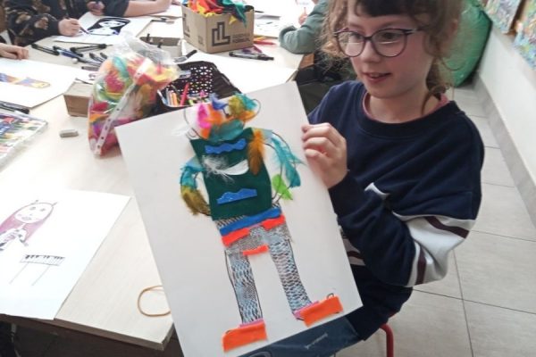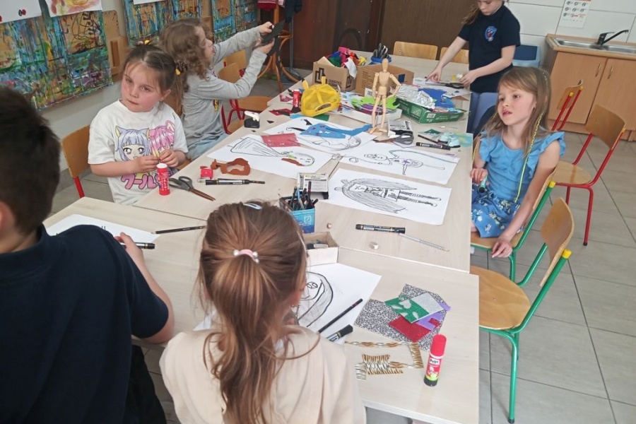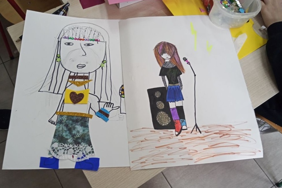 Podczas zajęć dzieci dały się zaprosić do aktywności plastycznej, projektując stroje sceniczne instrumentalistów i wokalistów.