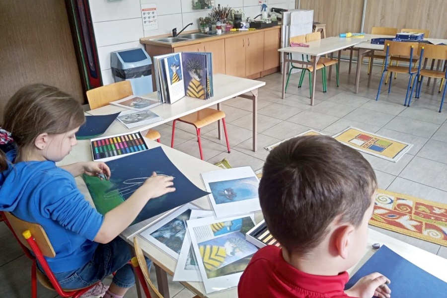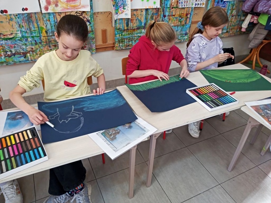 W nawiązaniu do pięknej wystawy Wydawnictwa Tatarak, goszczącej przy Pałacowej BIBLIOTECE, Uczestniczki i Uczestnicy Pracowni Plastycznej przeczytali książkę autorstwa Gerdy Wagner.