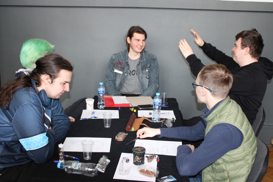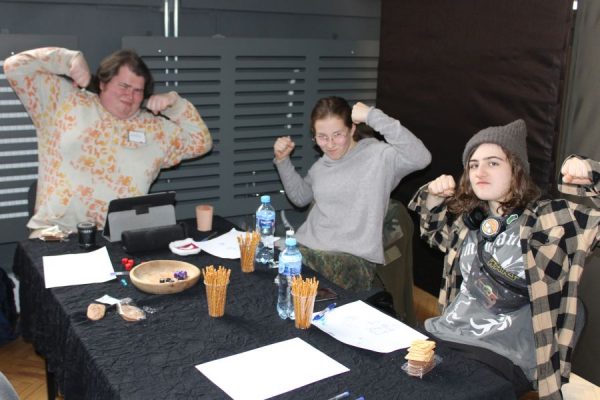 Wiele pokoleń przewija się przez pałacowe mury. Dzieje się tak również na naszym erpegowym wydarzeniu, które udowadnia, że osoby w różnym wieku mogą się ze sobą świetnie bawić niezależnie od PESELu. RPG to przecież zabawa drużynowa – w drużynie możemy się śmiać, płakać, pocieszać czy wspierać. Tak też zresztą było i tym razem.