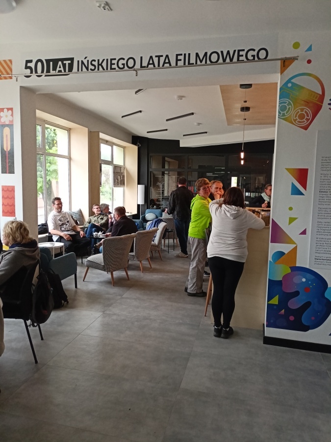 Zakończenie odbyło się w Galerii O.Mega – galerii Ińskiego Lata Filmowego, gdzie podsumowaliśmy, przy kawie, grę terenową i całe warsztaty. Za gościnę w tym miejscu, dziękujemy panu Przemkowi Lewandowskiemu – dyrektorowi artystycznemu Festiwalu Filmowego, który opowiadał o festiwalu, o filmach i sławnych gościach Ińskiego Lata Filmowego.