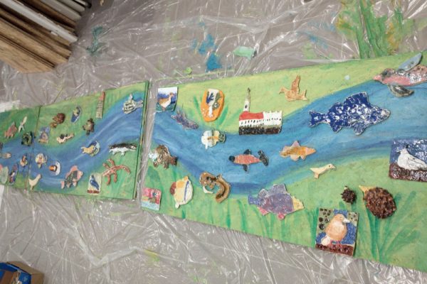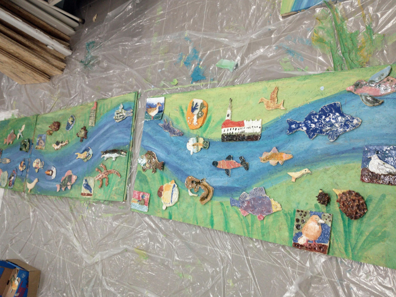 I ostatni etap mozaiki już zakończony! Płyty pod mozaikę pomalowane, ostatnie kafelki przyklejane i już niedługo mozaika popłynie na Łąkę KANY.