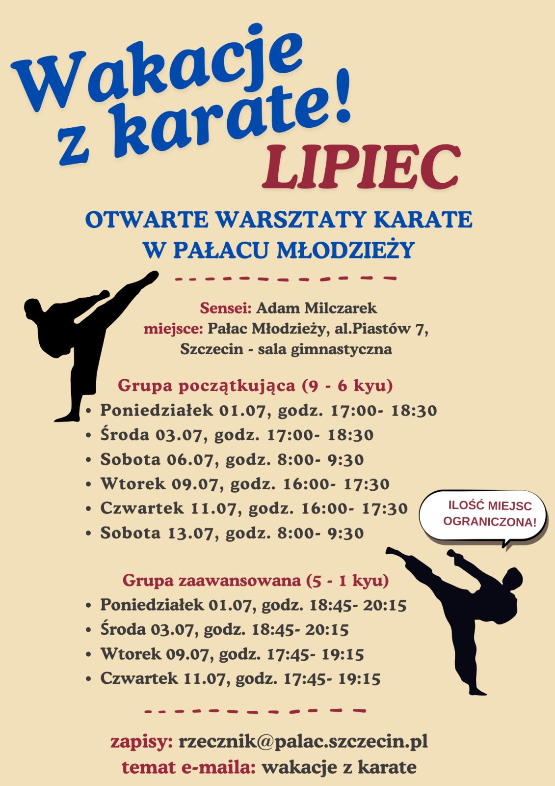 W lipcu zapraszamy na Wakacje z Karate! Otwarte warsztaty Karate w sali gimnastyczne Pałacu Młodzieży, to świetna alternatywa na spędzenie wolnego czasu, ale również wspaniała okazja, by sprawdzić na czym polega ta sztuka walki.