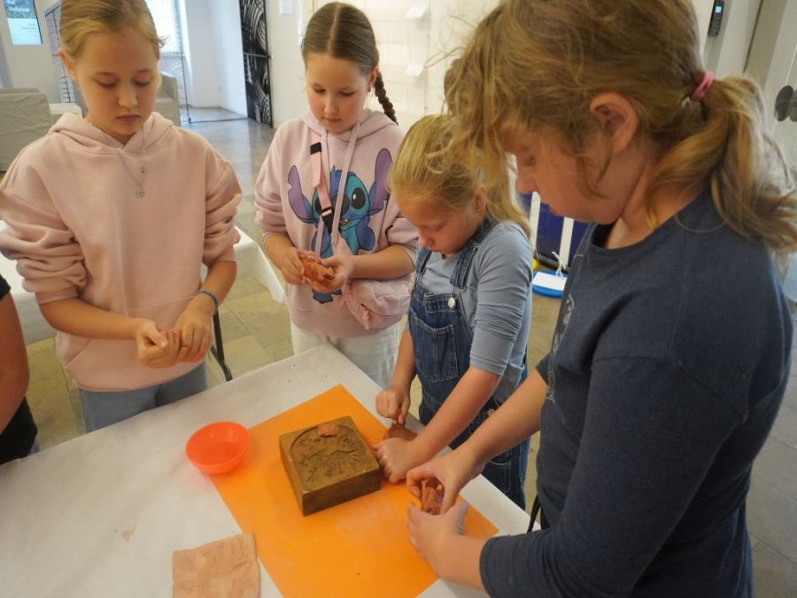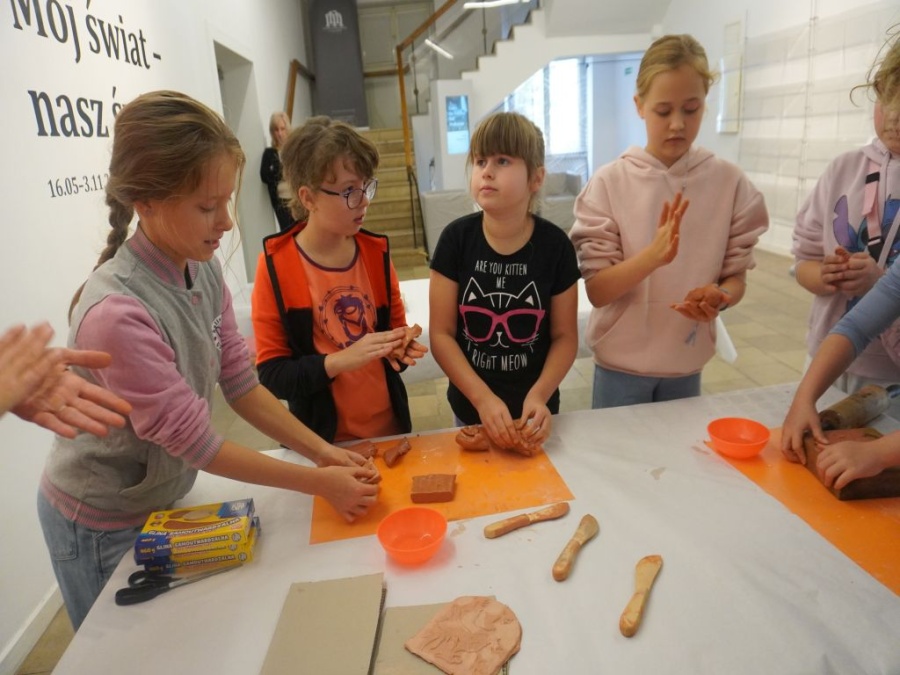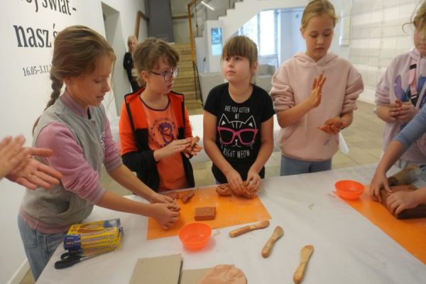 Lekcja była również inspiracją do rozwijania swoich talentów w trójwymiarze, a także momentem zatrzymania przy fakturach różnych materiałów plastycznych. Uczestniczki modelowały w folii aluminiowej i tworzyły prace w glinie.