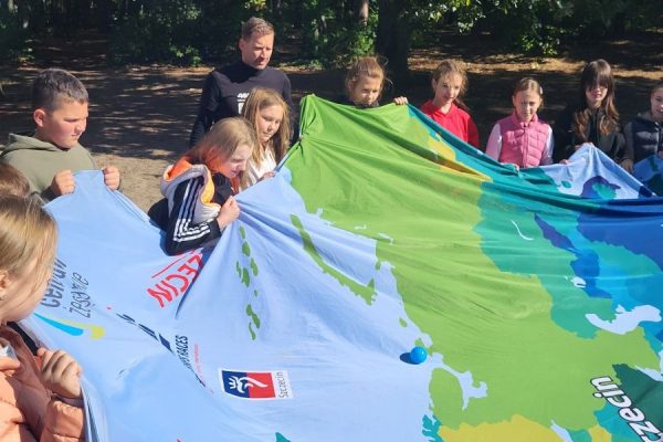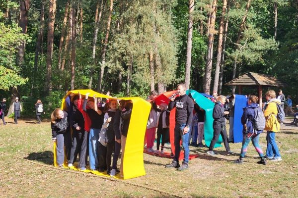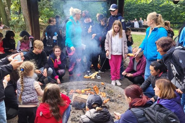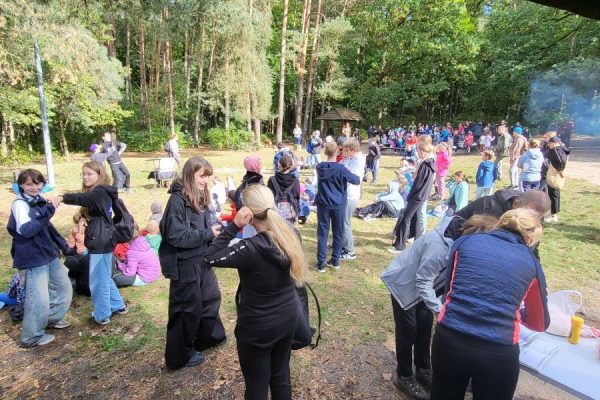 O godz. 10.00 wyruszyliśmy na szlak, który prowadził przez urocze zielone tereny Lasku Arkońskiego. Idąc zielonym szlakiem dotarliśmy na Wzgórze Arkony z ruinami Wieży Quistorpa. Po krótkiej przerwie ruszyliśmy w stronę Polany Białej, na której czekało nas wiele atrakcji. Było ognisko, pieczenie kiełbasek oraz mnóstwo dobrej zabawy – konkursy, quizy, które przygotował i poprowadził animator pan Łukasz Wójcik i pan Patryk z firmy 4 seasons.