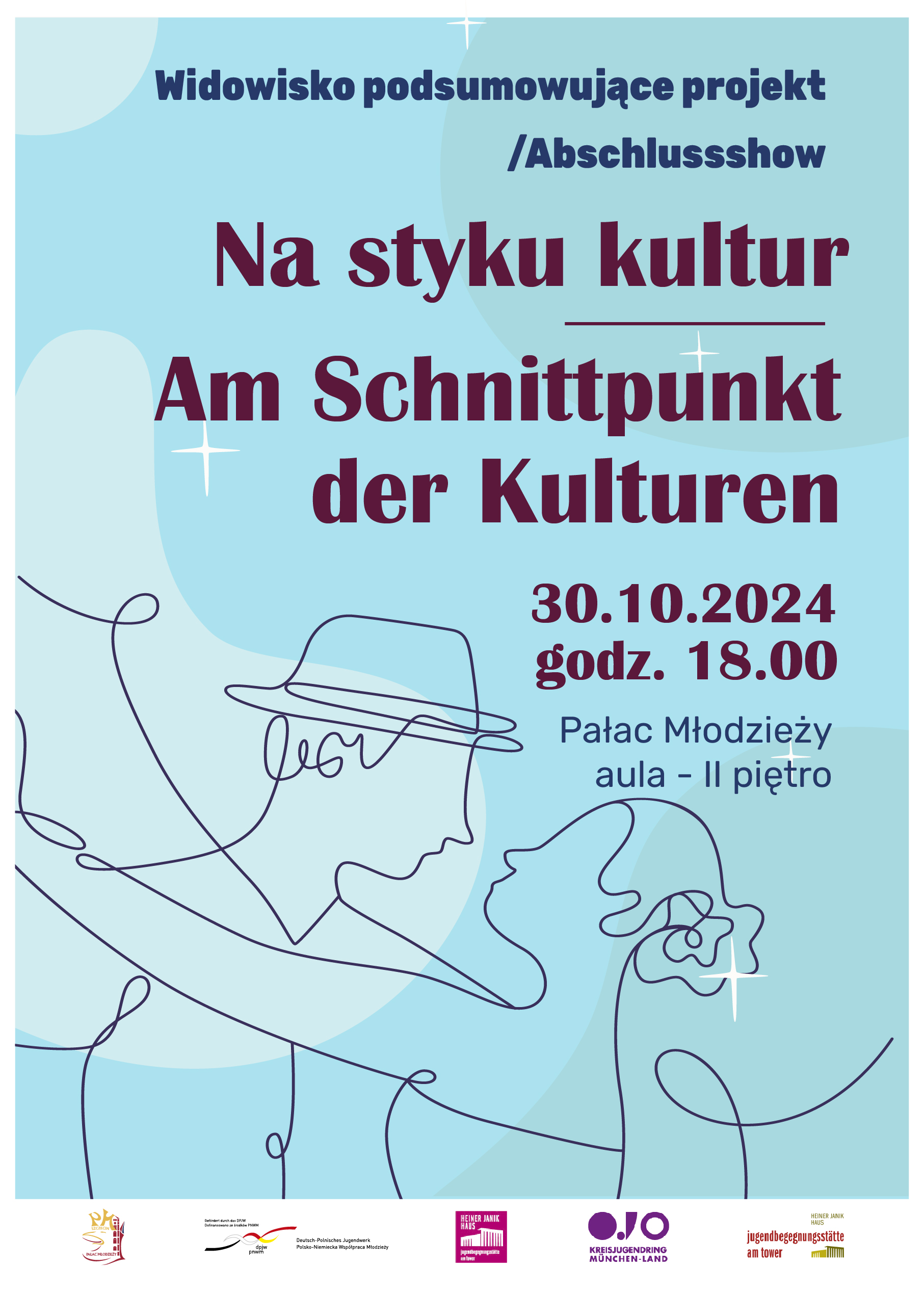 Widowisko podsumowujące projekt „Na styku kultur” Pałac Młodzieży Opublikowano w 28 października, 2024 o 16:16 przez Dział Organizacyjny - Iwona14 marca, 2025 o 11:32 Zapraszamy wszystkich serdecznie na widowisko podsumowujące projekt w ramach polsko-niemieckiej współpracy młodzieży pt. „Na styku kultur”. Wydarzenie odbędzie się w środę 30 października o godzinie 18.00 w auli Pałacu Młodzieży.